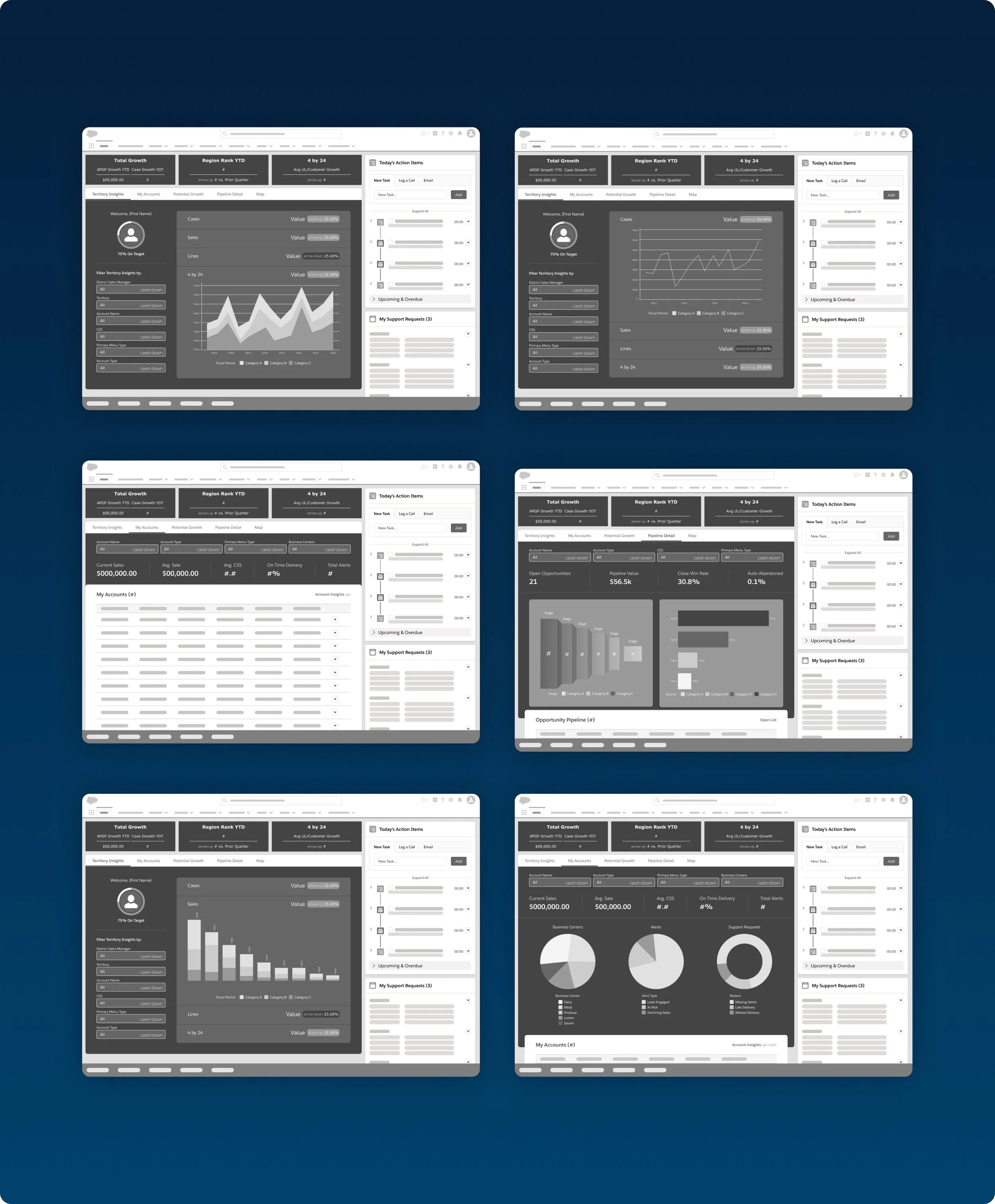 I began by building persona’s through collaborative workshops and measuring LOE and LOI by business need and user need. Based on these finding we prioritised critical actions and items of potential value Then began with wireframes to explore possible presentation of Tableau integrations.